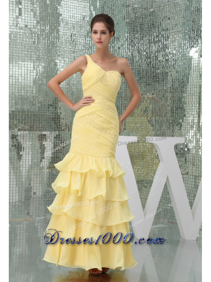 One Shoulder Ruffle-layers Ankle-length Prom Dress in Yellow