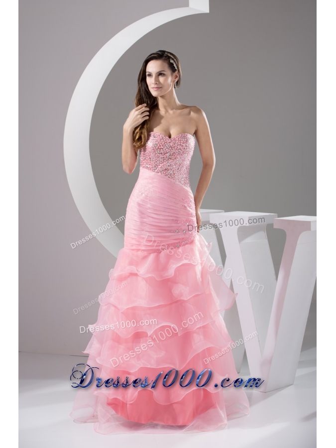 It's a wonderful pink prom dress with sweetheart neckline and a-