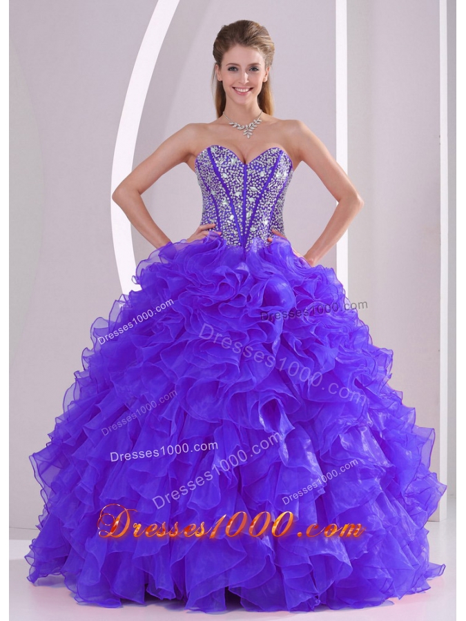 Discount Ball Gown Sweetheart Ruffles and Beaing Floor-length Quinceanera Gowns in Purple