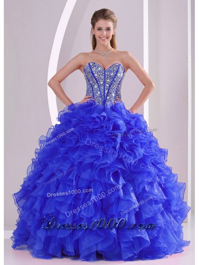 2014 Ball Gown Sweetheart Blue Quinceanera Gowns with Ruffles and Beading
