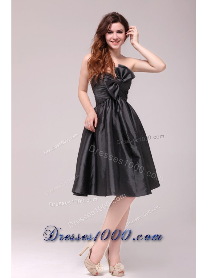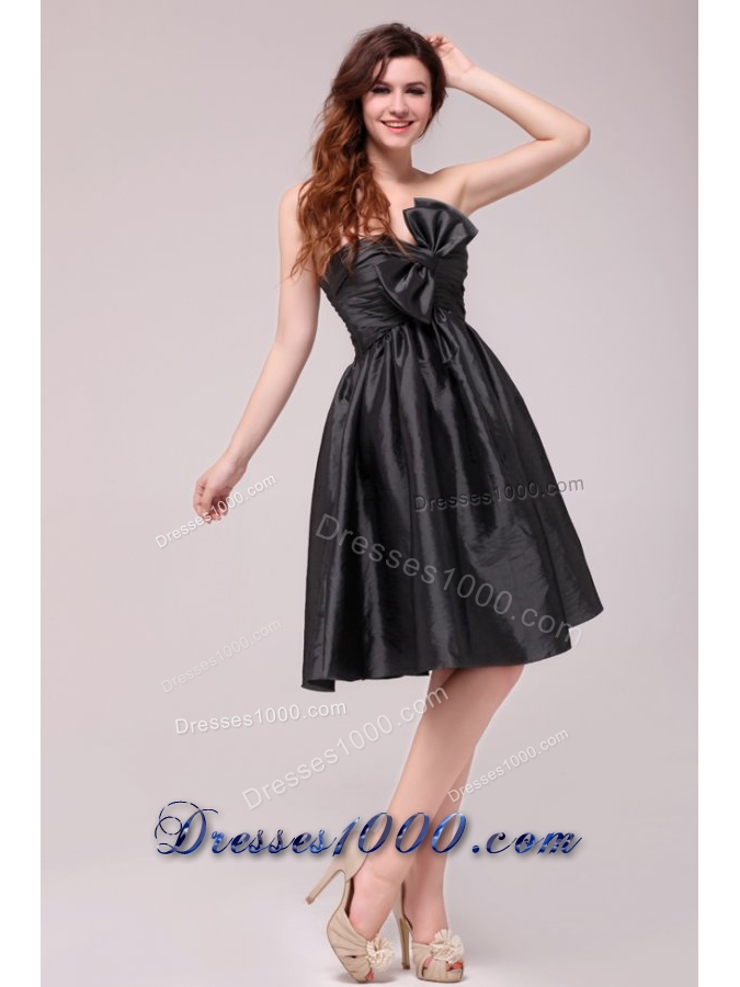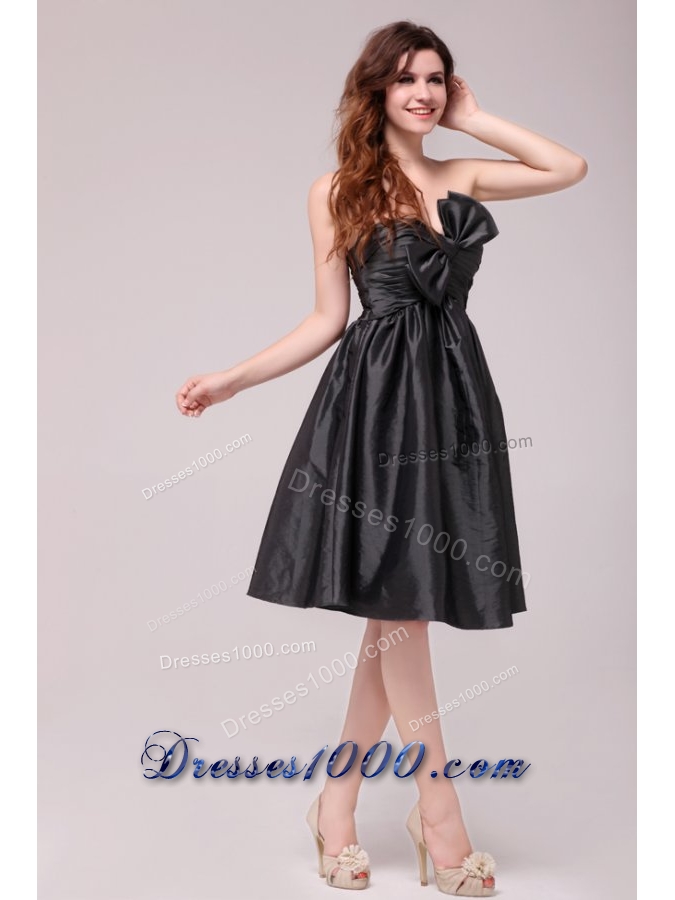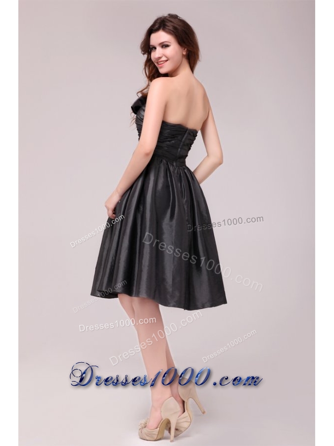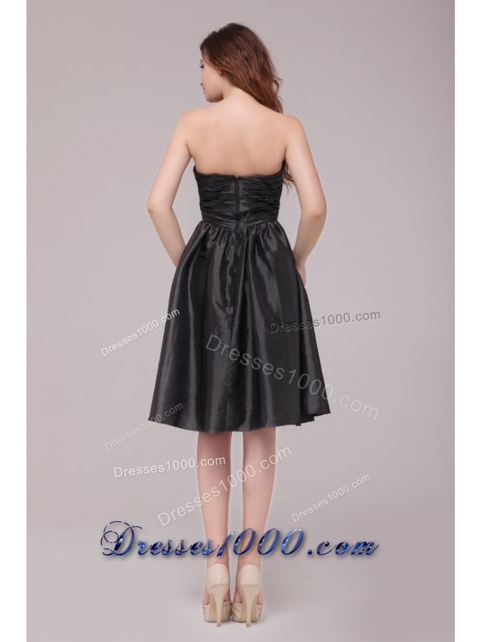 Black Sweetheart Ruched Taffeta Knee-length Prom Pageant Dress