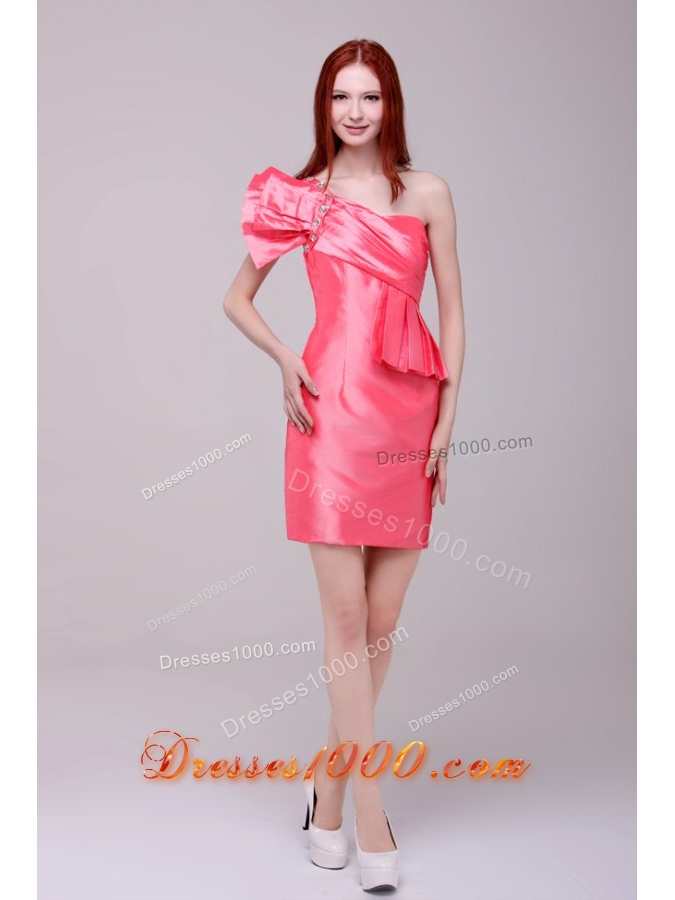 Watermelon Red One Shoulder Taffeta Prom Dresses with Ruching