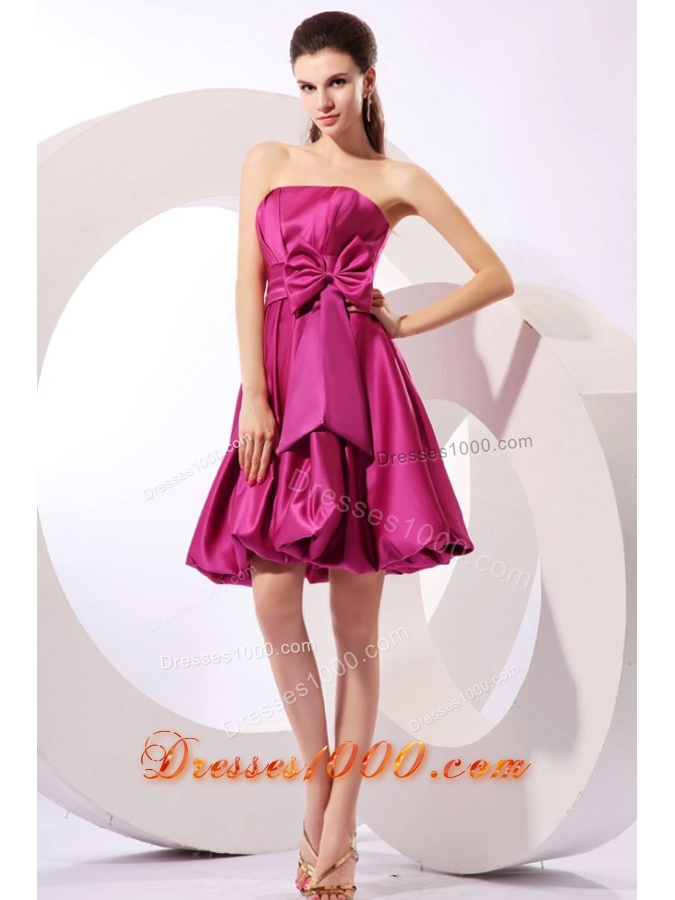 Strapless Fuchsia A-line Knee-length JS Prom Dress with Bowknot