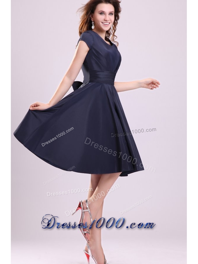 Navy Blue Scoop A-line Knee-length Dresses For Prom Night 2015