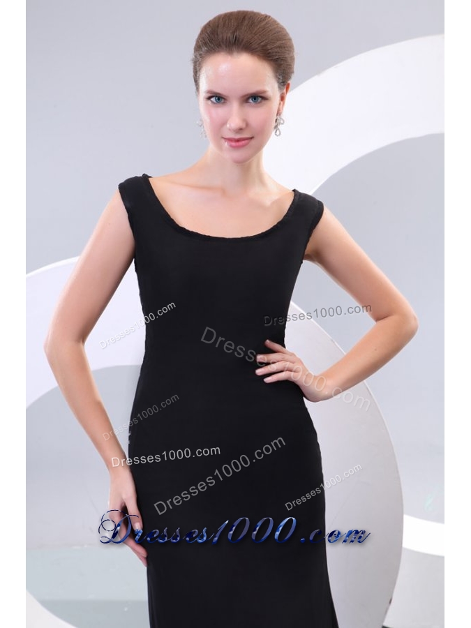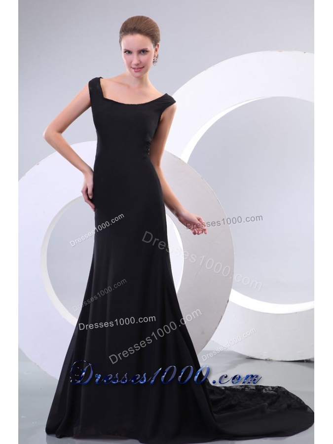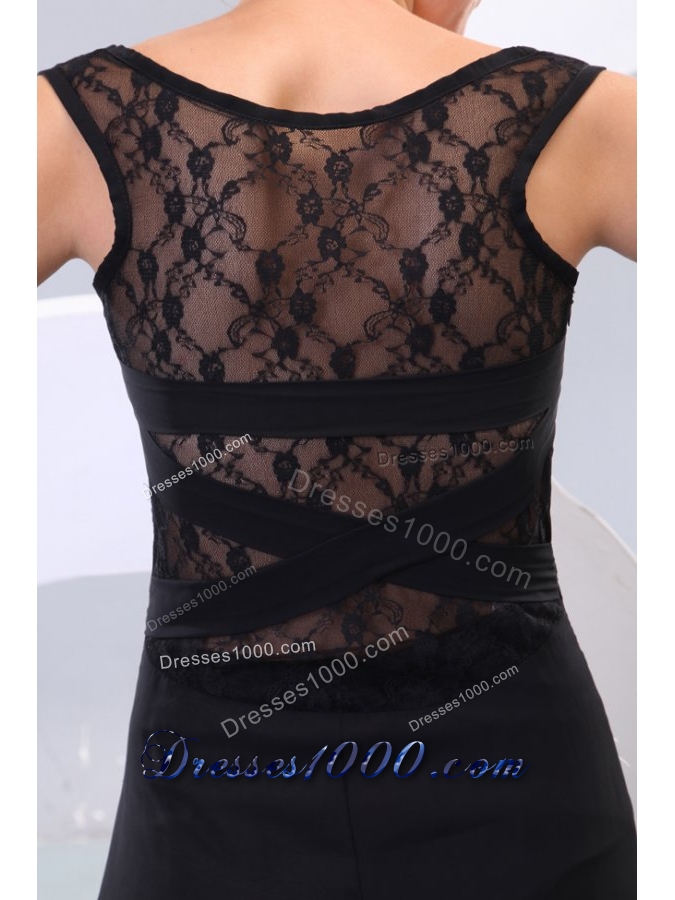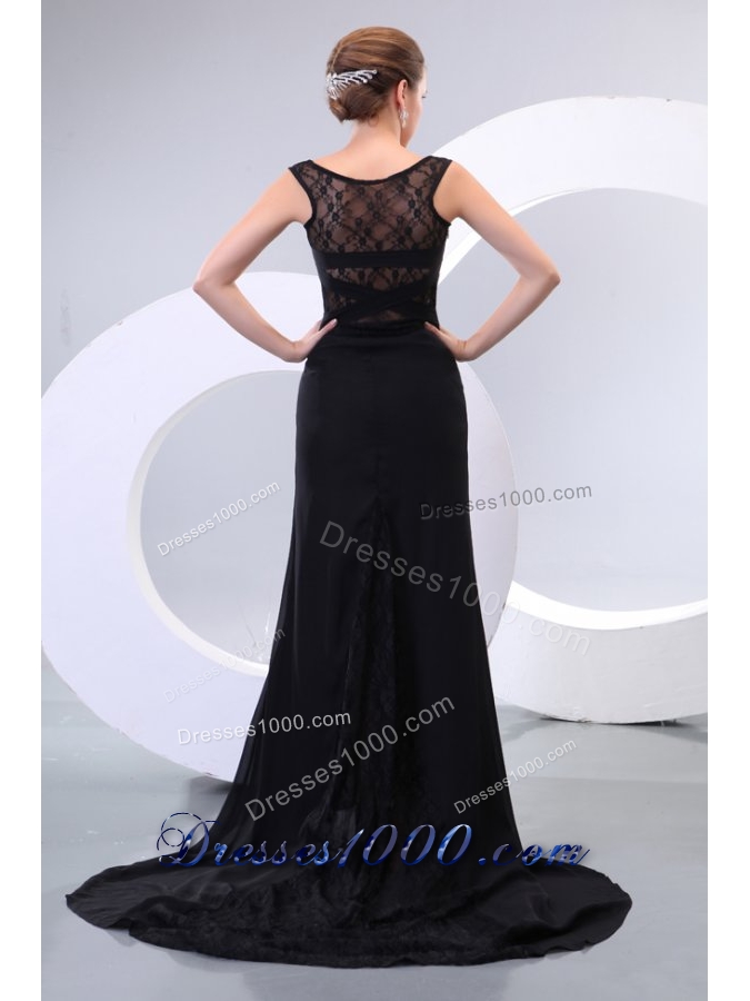 Scoop Black Chiffon Lace Prom Pageant Dresses with Court Train