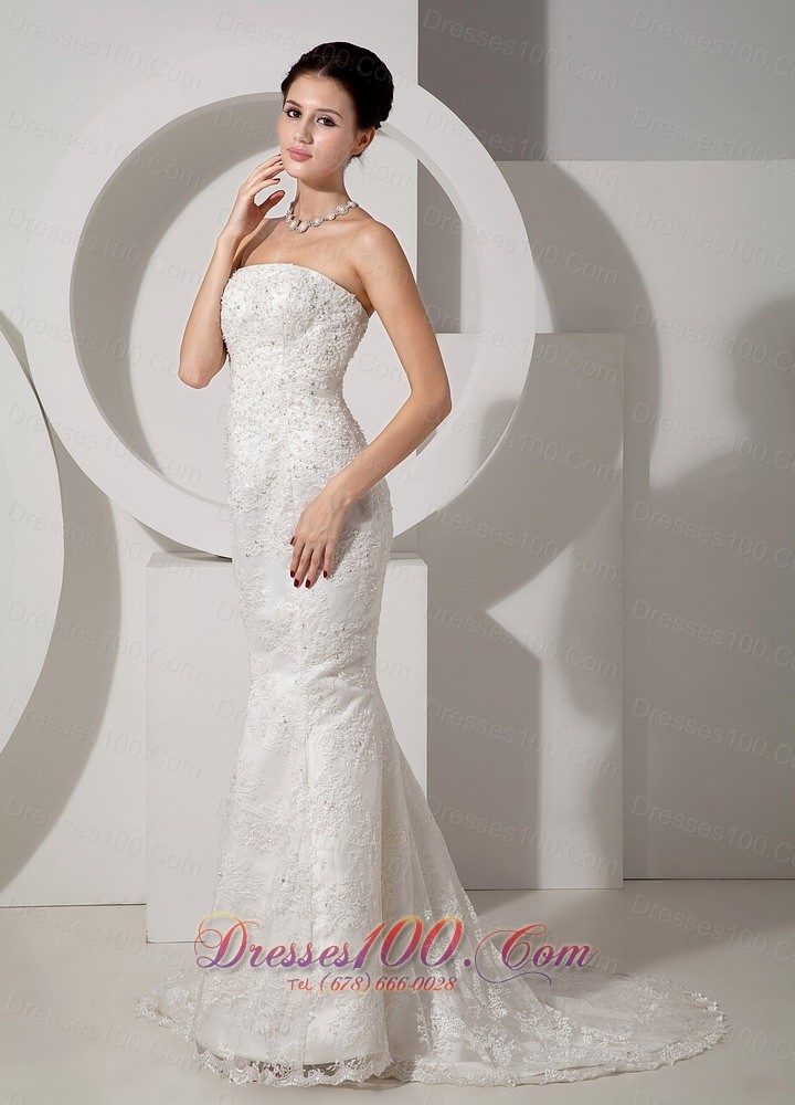 Strapless Mermaid Lace Beaded Court Wedding Dress