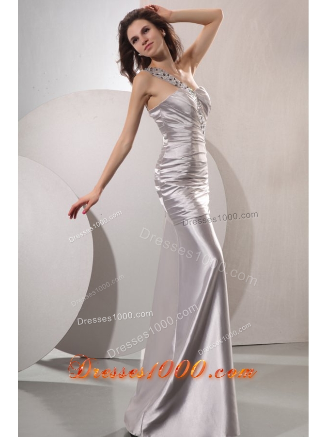 Fashionable Ruched Column Prom Gowns with Beaded One Shoulder