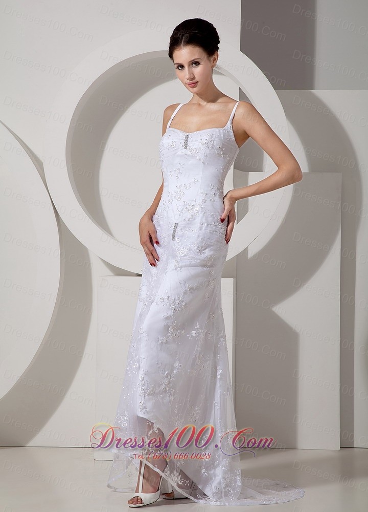 Opulence is the word written all over this dress. It is truly an example of high end couturing fashion. It features a sheathy bodice with straps in a lovely floral appliqued fabric. Pleats gathered on bust and hips add interest and detail to the mid-section of the dress. The crystal chains on the interactions make it shinning and push you to be the lightspot. The floor-length skirt forms an asymmetrical high-end hemline before shaping the brush train in the back. If you're looking for a high-end dress without the high-end price tag, this is definitely one you should consider. The back completes with zipper.