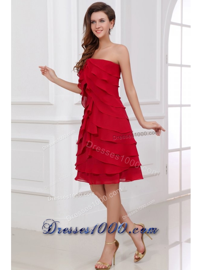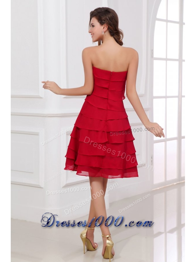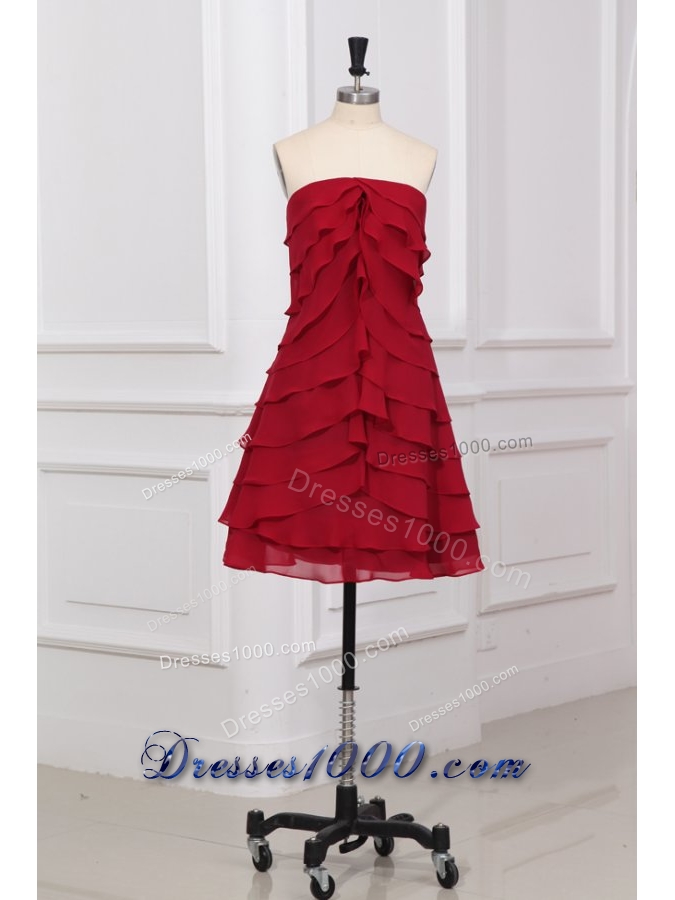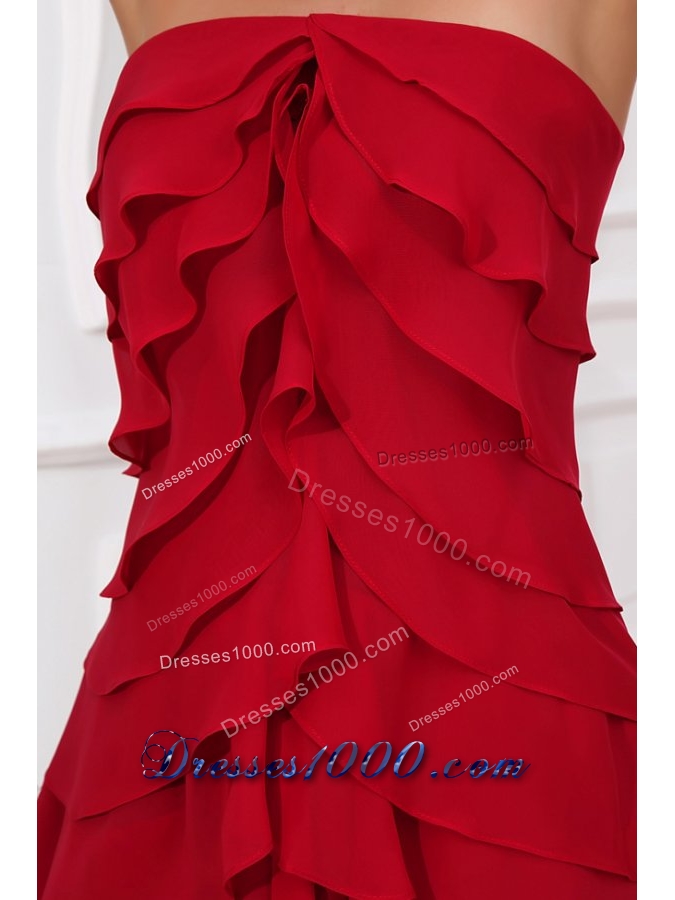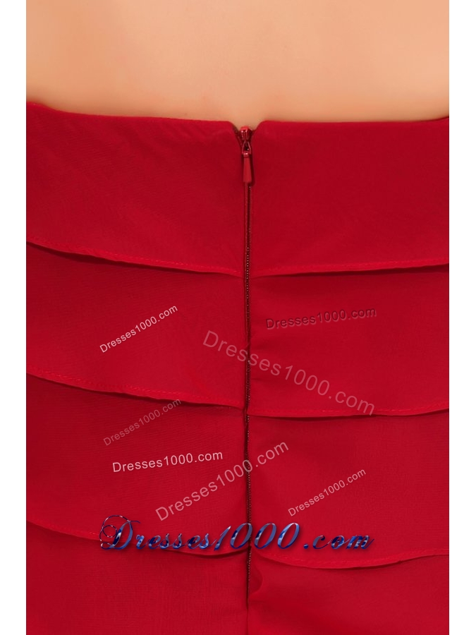 A-line Strapless Empire Red Short Prom Dress with Chiffon Layers