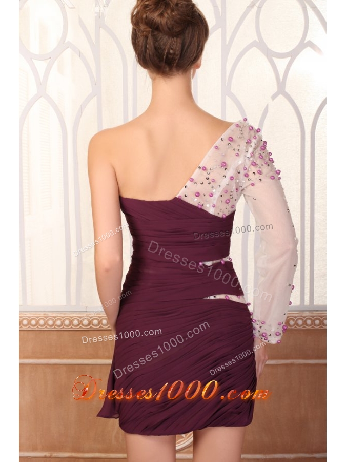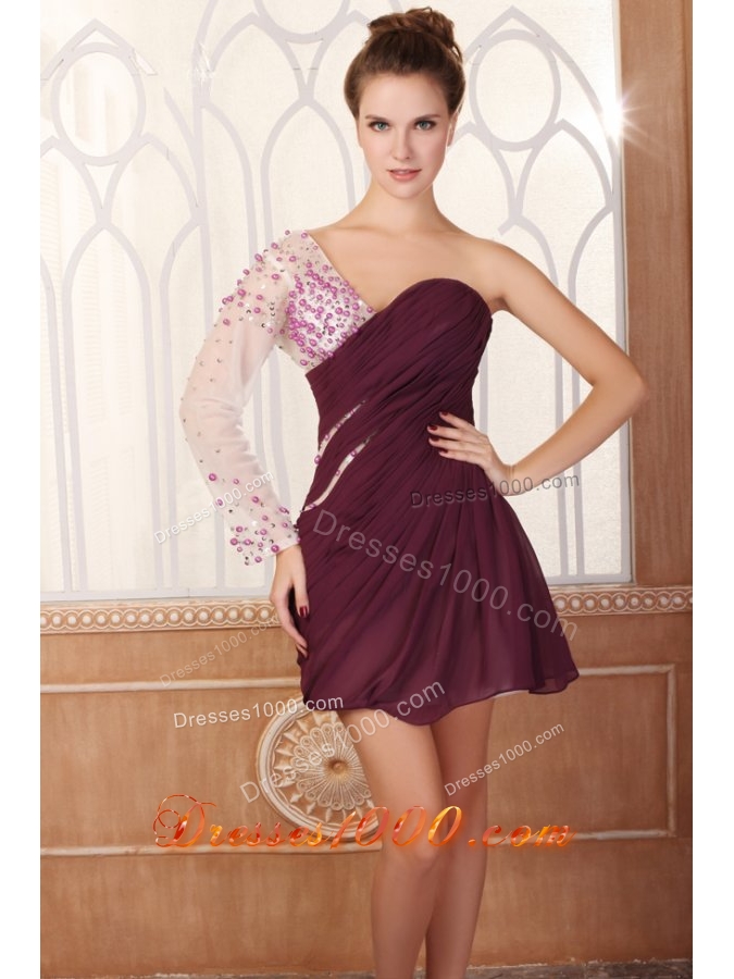 Unique One Shoulder Beading Long Sleeves Chiffon Prom Dress