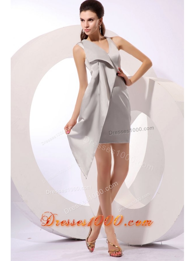 V-neck Black Belt Mini Length Satin Trendy Prom Dress in Grey
