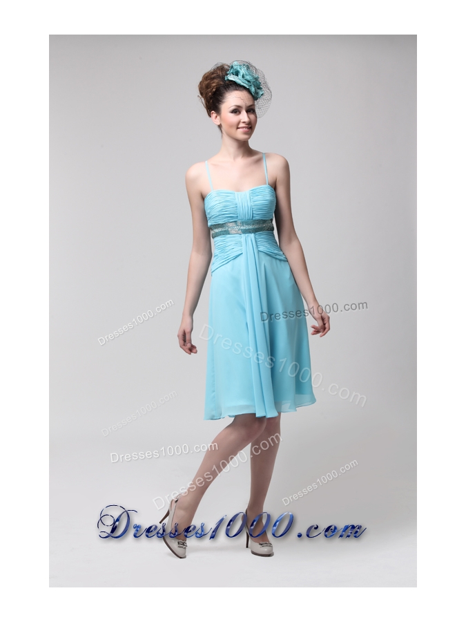 Straps Ruched Beading Blue Chiffon Lovely Prom Party Dress