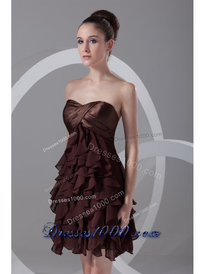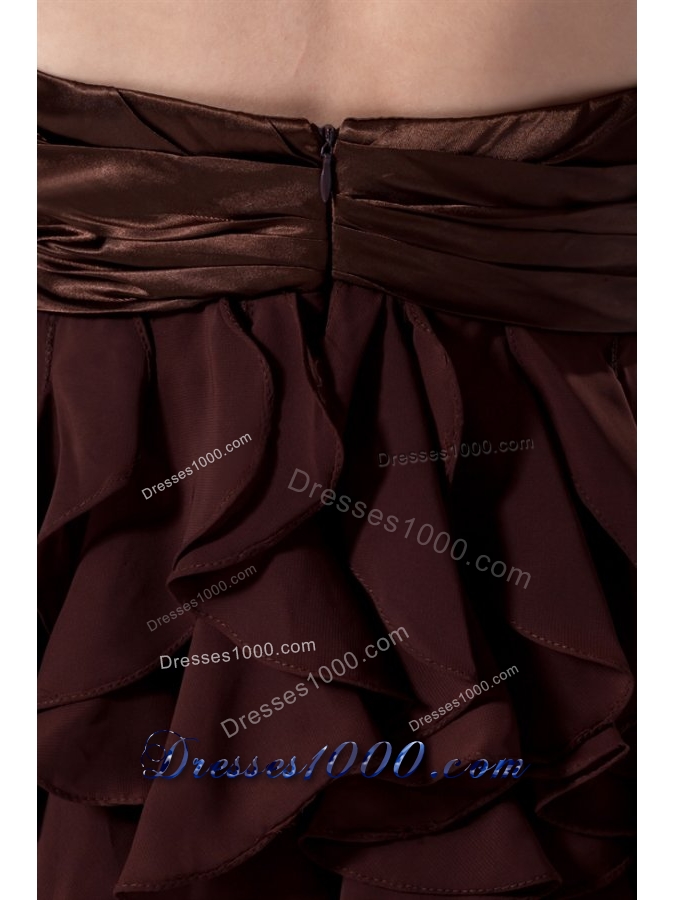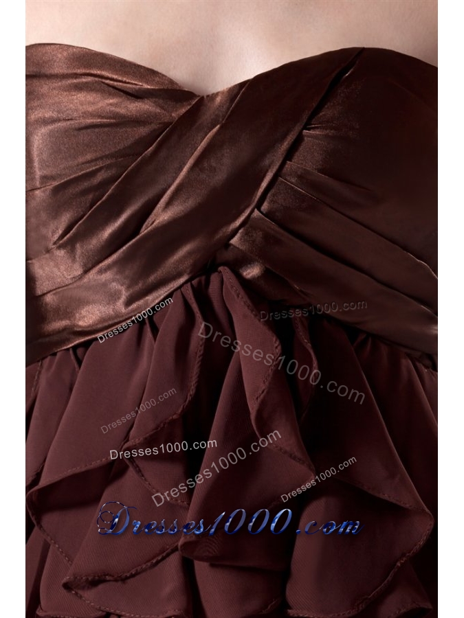 Brown Sweetheart Ruffled Chiffon A-line Prom Evening Dress