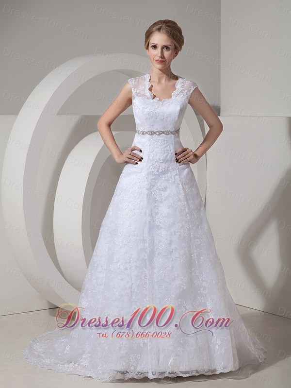 Lace Beading Court Train Bridal Gown Wedding Dress