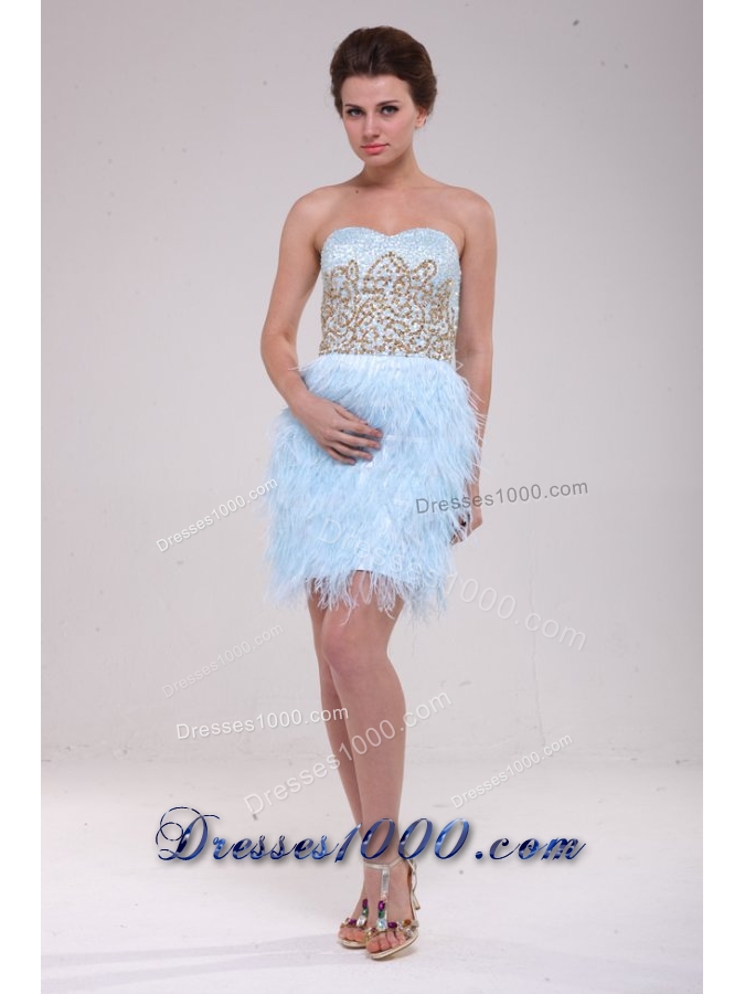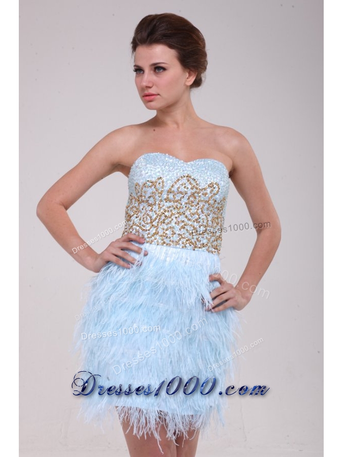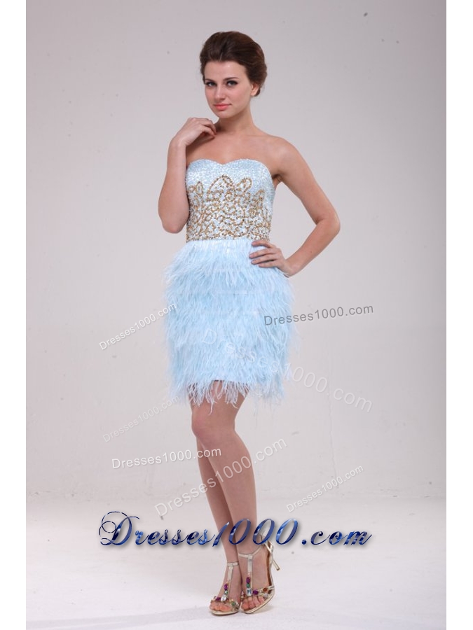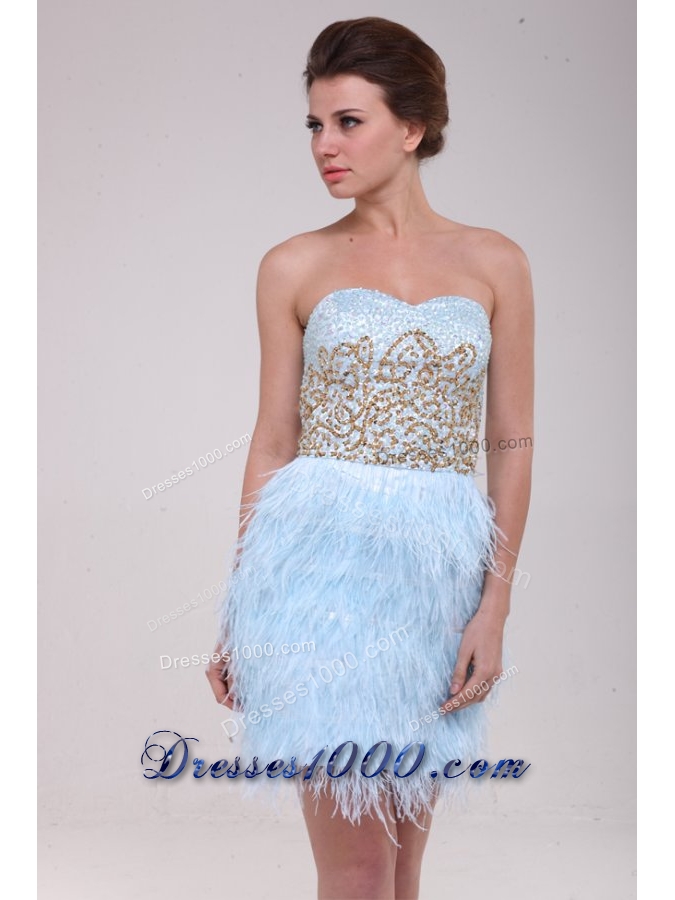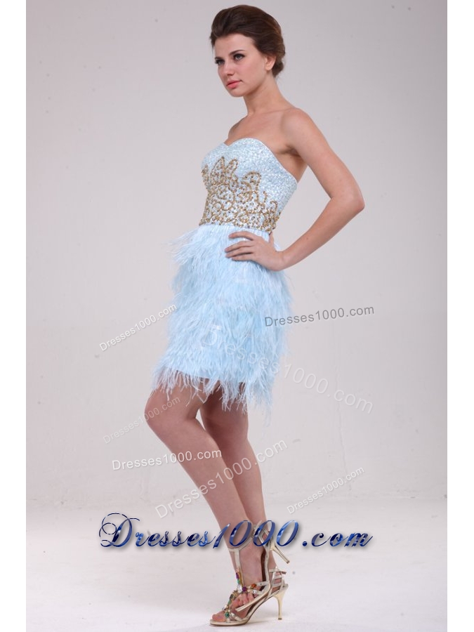 Feather Sweetheart Appliques Blue Short Prom Cocktail Dress