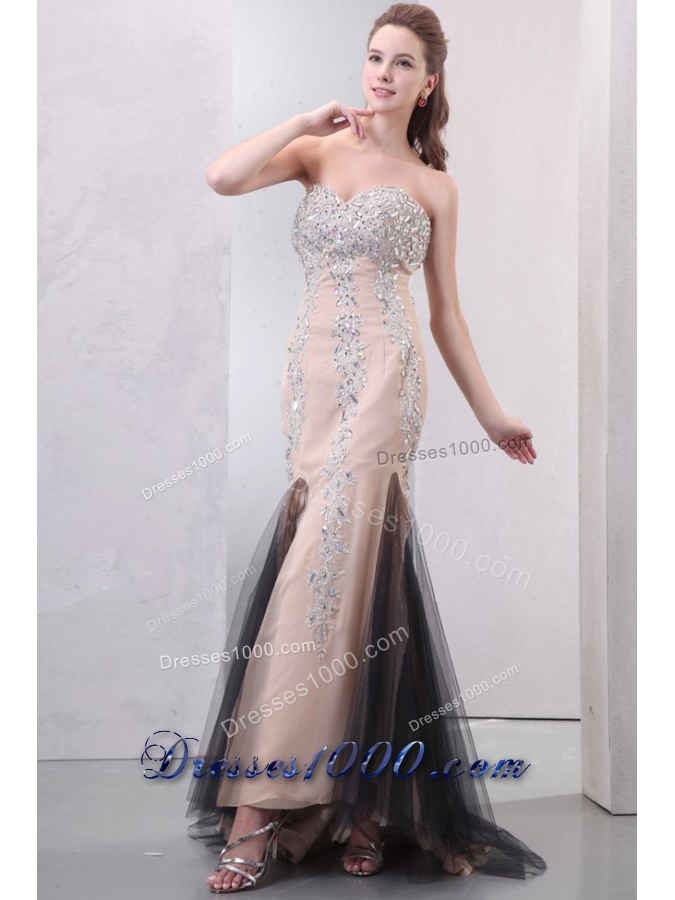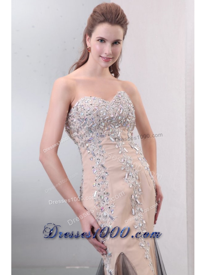 Champagne Rhinestone Mermaid Long Prom Nightclub Gowns