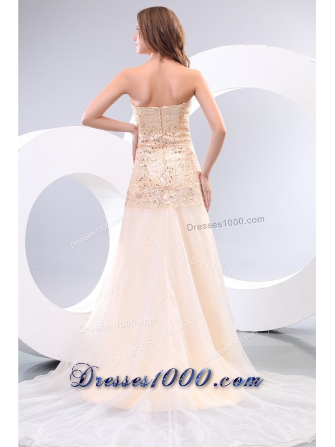 Chapel Train Sweetheart Beading Sequin Prom Dama Dresses