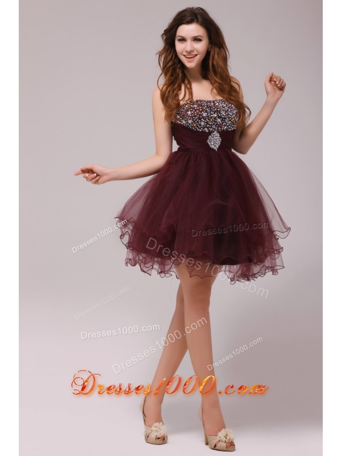 Organza Strapless Beaded Prom Formal Dress with Curly Hem
