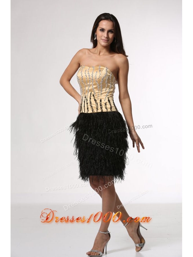 Champagne Beaded Bodice Black Feather Prom Party Dresses
