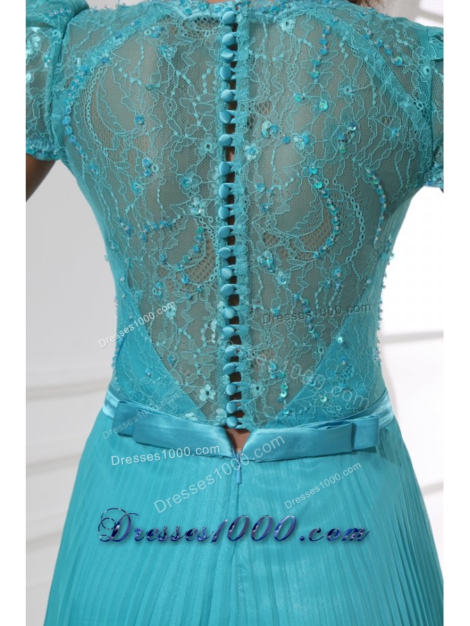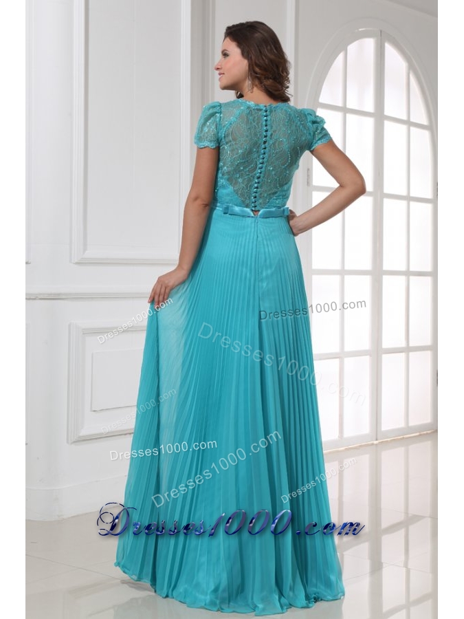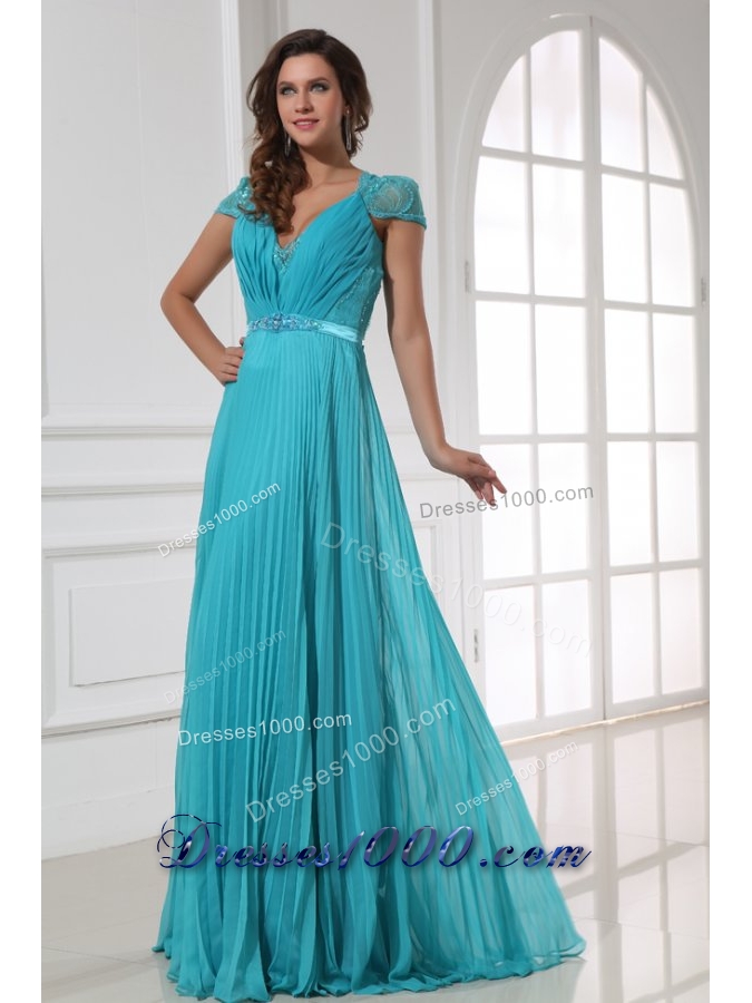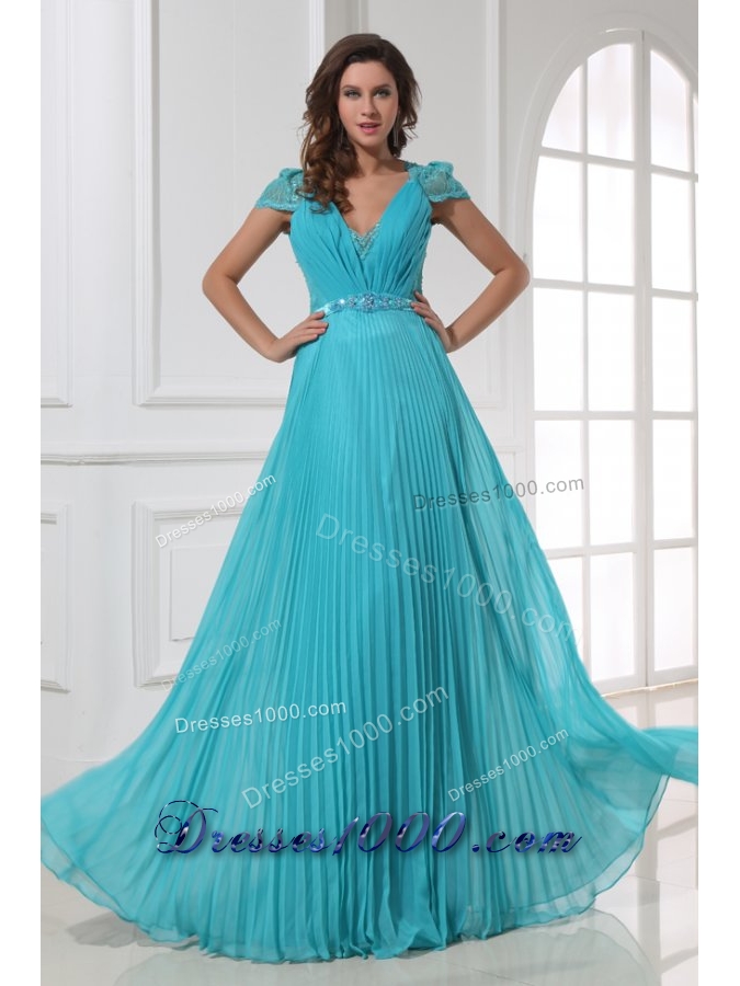 A-line Cap Sleeves Pleating Chiffon Dresses for Prom in Blue