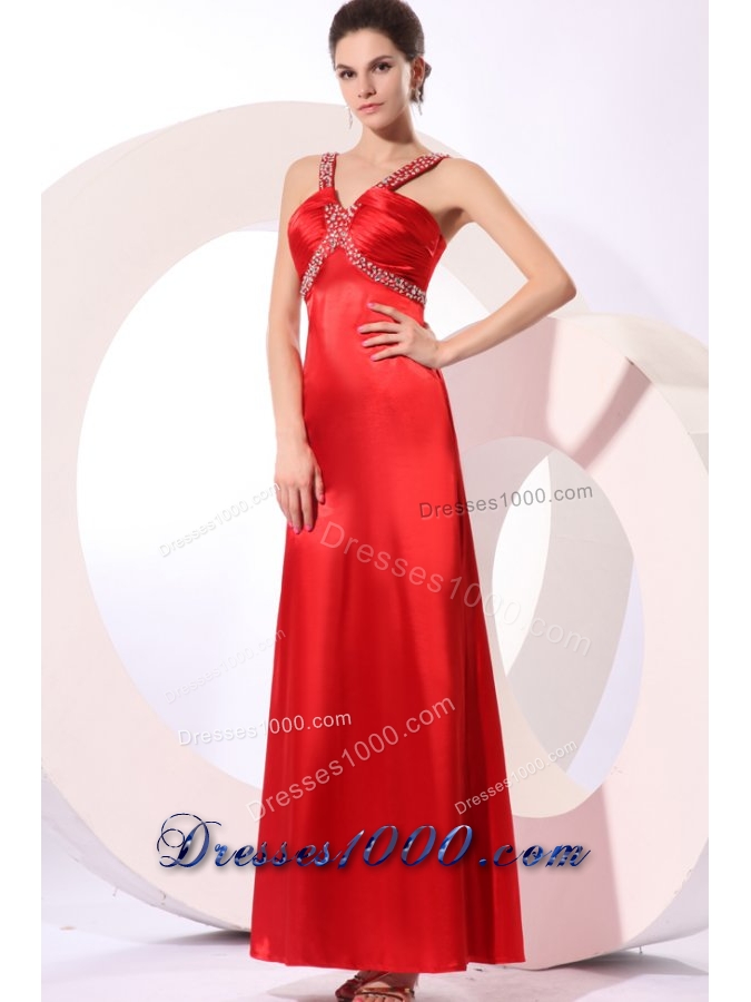 Paillettes Decorated Ankle-length Sheath Red Prom Dress for Girls