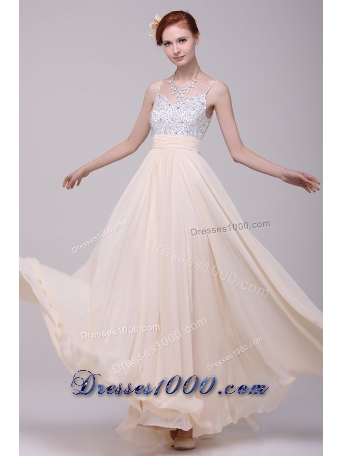 Spaghetti Straps A-line Champagne Prom Dress with Sequin Bust