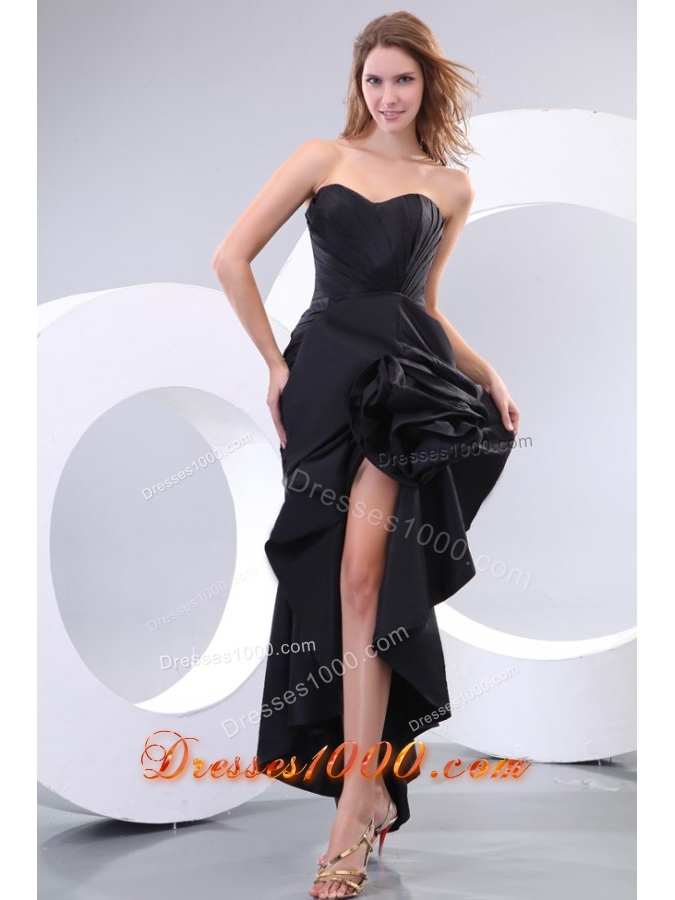 Ruching and Pick Ups High Slit Black Taffeta Prom Gown Dresses