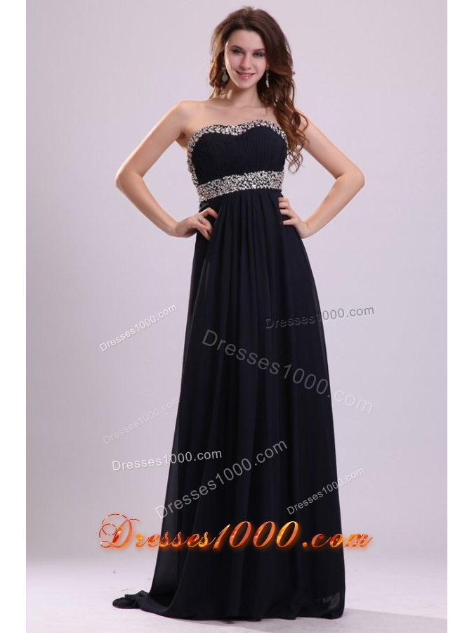 Empire Sequins Decorated Chiffon Prom Dresses with Brush Train