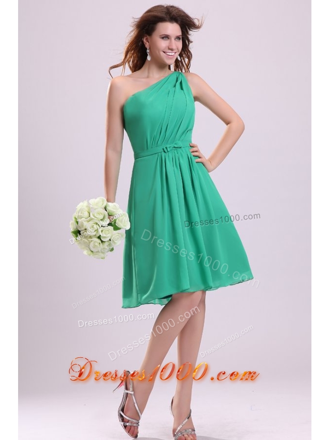 Turquoise One Shoulder Knee-length Chiffon Prom Cocktail Dress