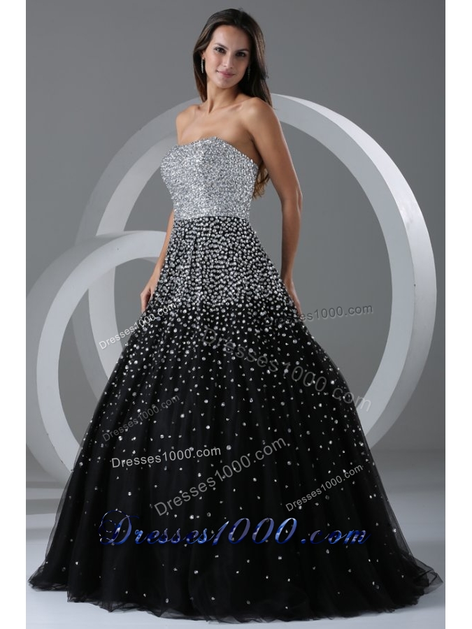 Black and Silver Puffy Organza Prom Cocktail Dress with Paillettes