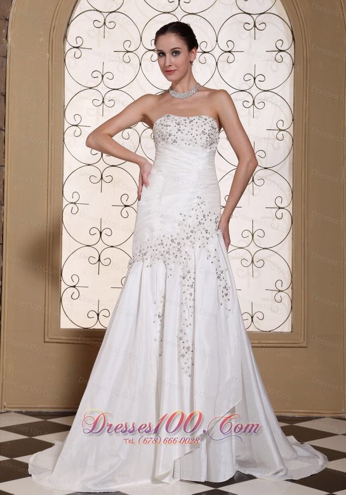 Qualified Beading Mermaid Brush Train Wedding Dress 2015