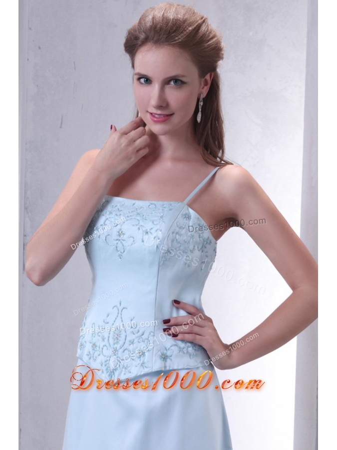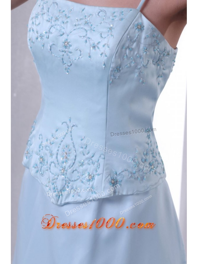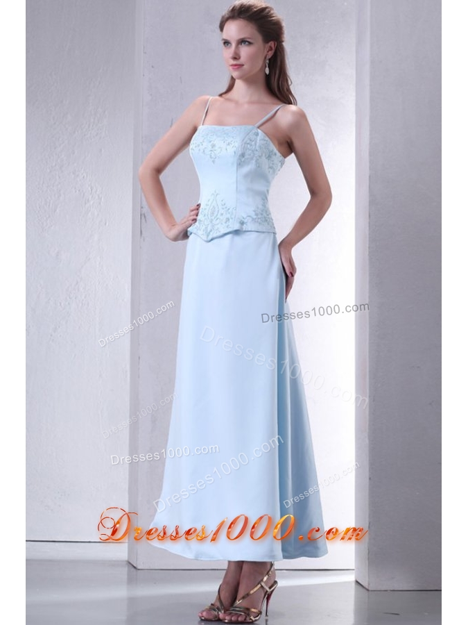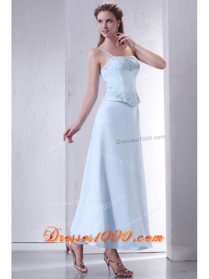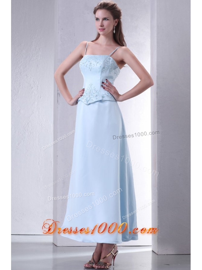 Baby Blue A-line Ankle-length Spaghetti Straps Prom Gown Dress
