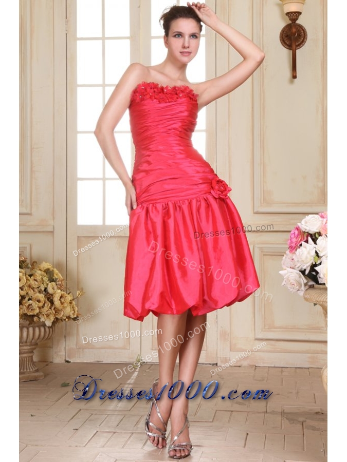 Ruche and Handle Flowers Knee-length Taffeta Prom Dama Gown