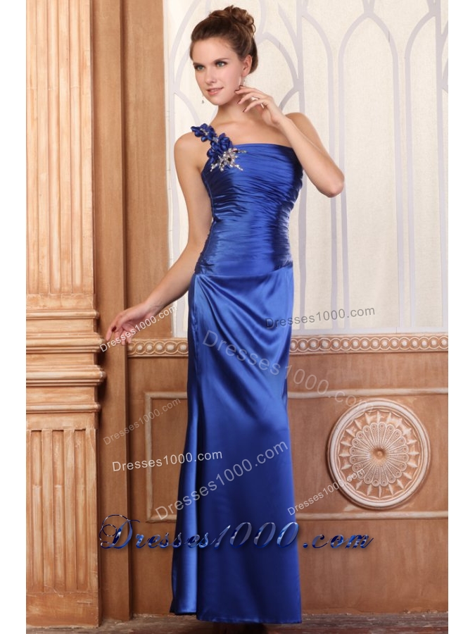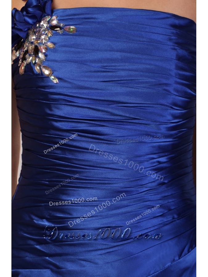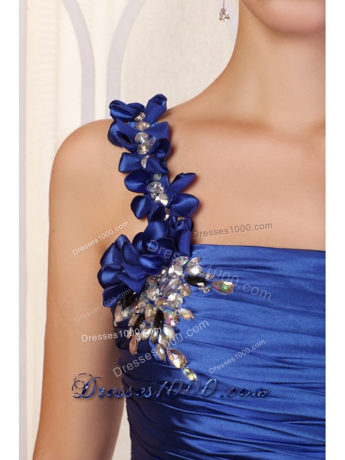 Handle Flowers One Shoulder Column Ruching Blue Prom Dresses