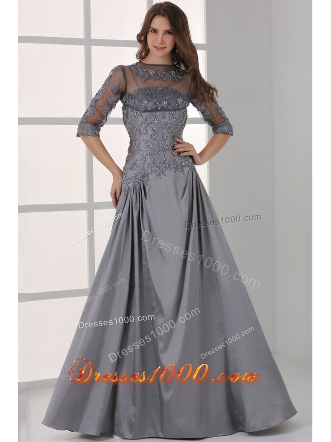 Half Sleeves Bateau A-line Beaded Appliques Prom Party Dresses