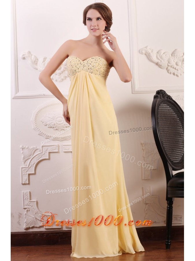 Light Yellow Empire Chiffon Prom Dress with Beaded Bust for Girls