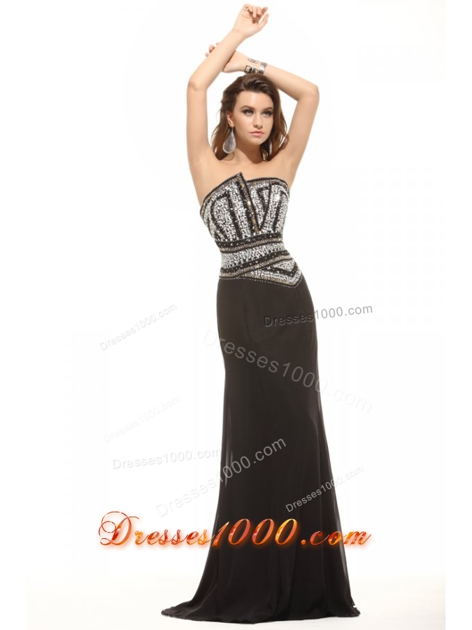 Sparkling Column Black Strapless Beading Chiffon Dresses for Prom Night
