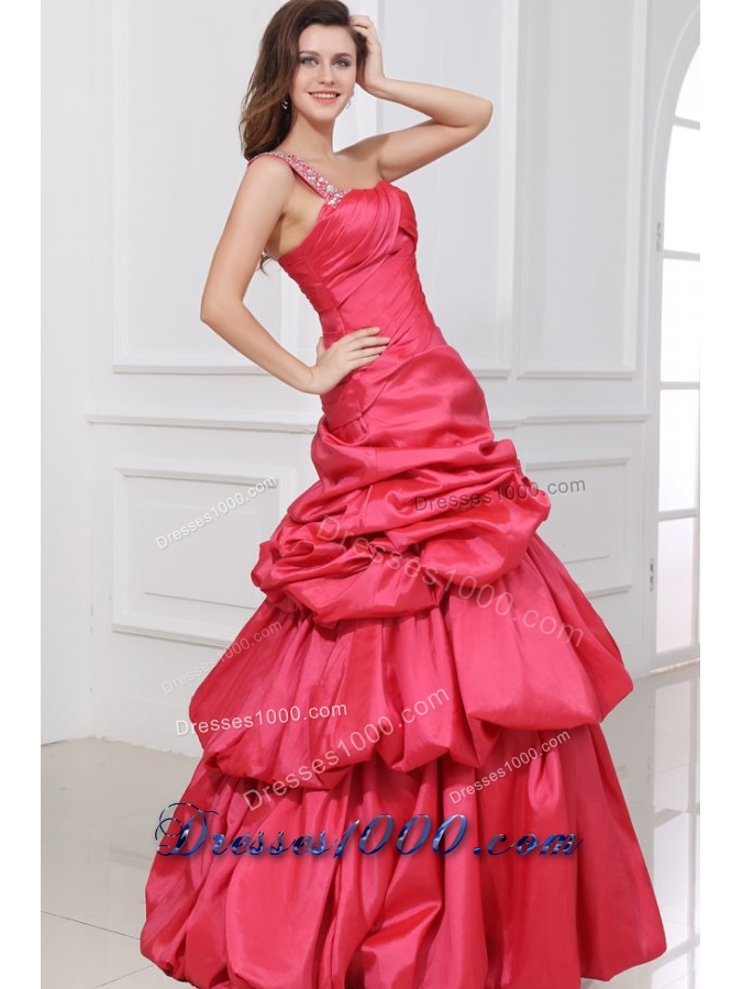 A-line Beaded Decorate One Shoulder Prom Holiday Dress in Coral Red