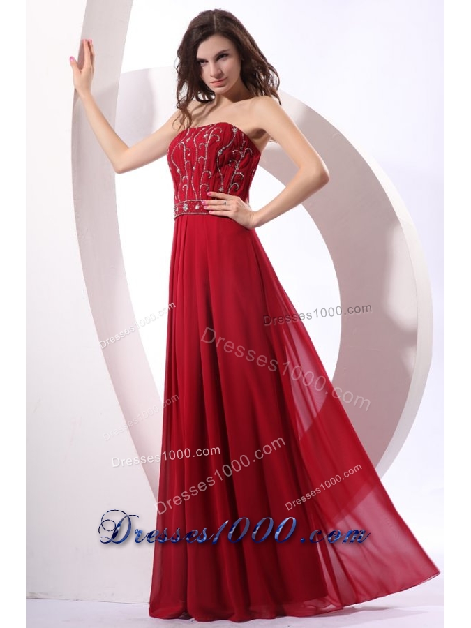 Strapless Beaded Decorate Floor-length Wine Red Prom Pageant Dress