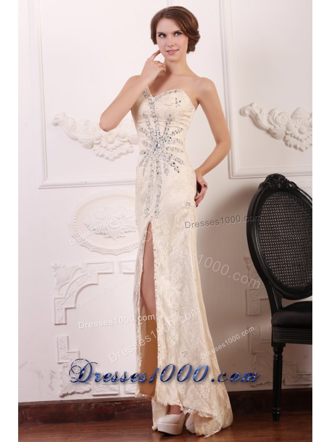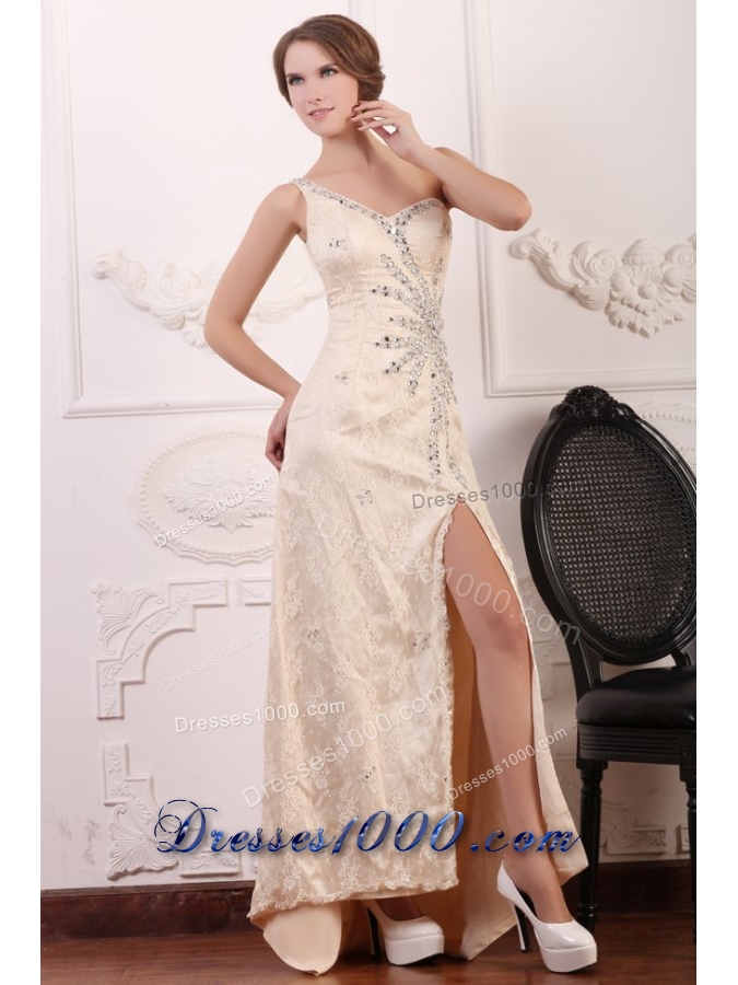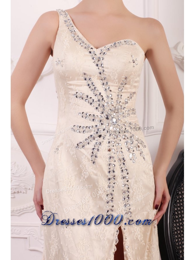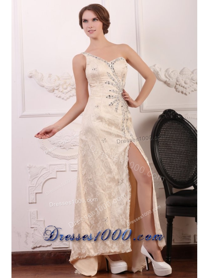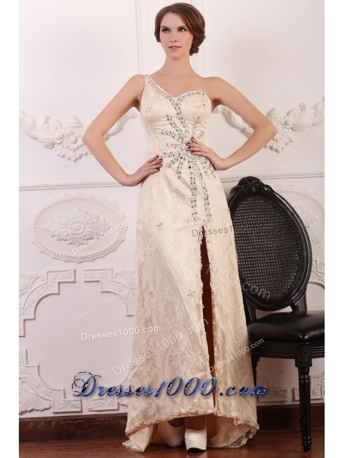 Fashionable One Shoulder Prom Dress with Beading and Slit Decoration