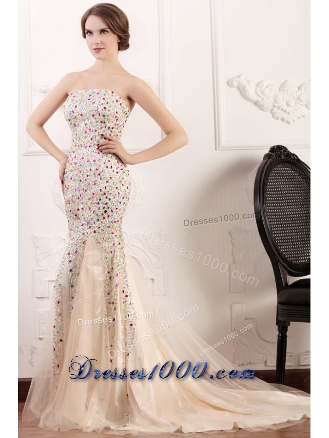 Luxurious Mermaid Prom Dress with Multi-color Beading Overlay