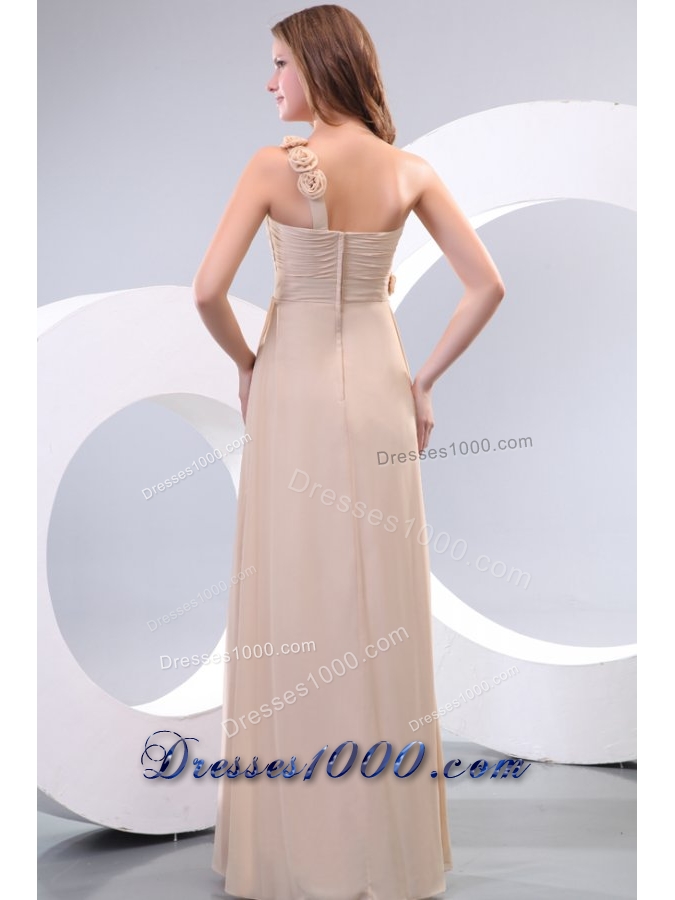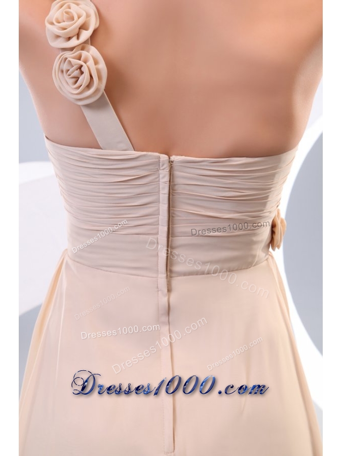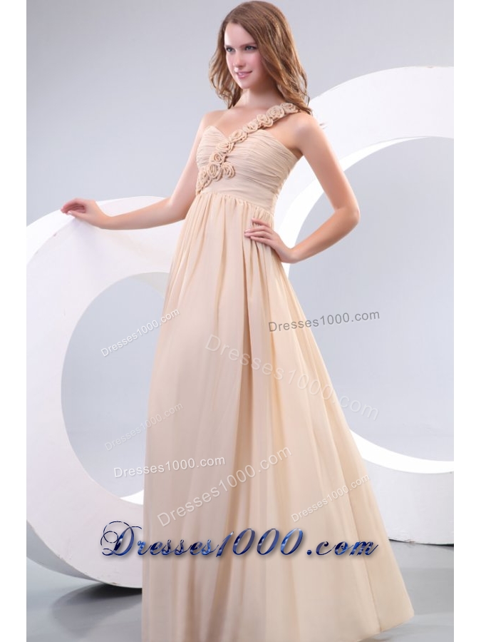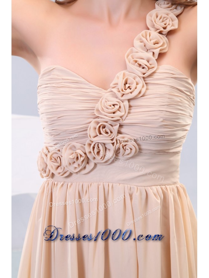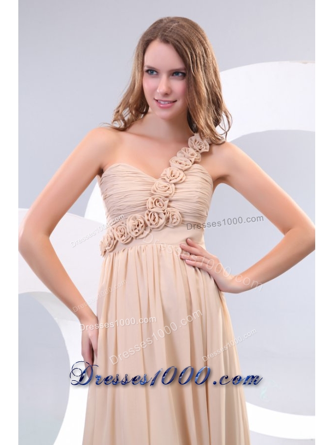 Hot One Shoulder Prom Dress with Small Flowers Accent and Ruches