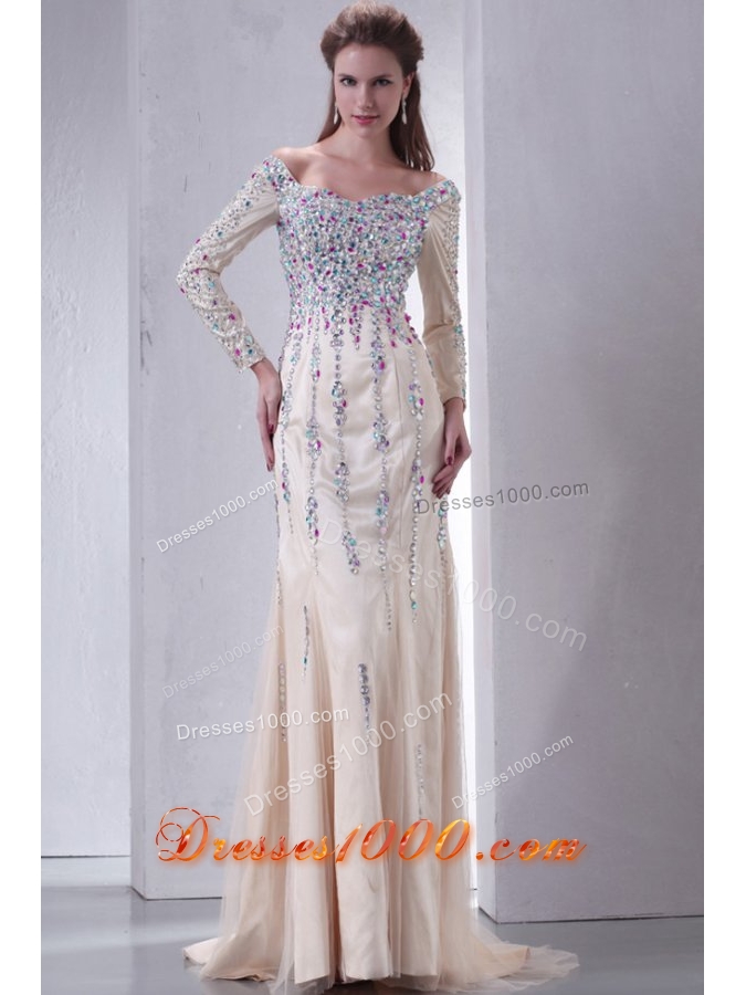Beautiful Prom Dress with Multi-color Beading Decoration and Long Sleeves
