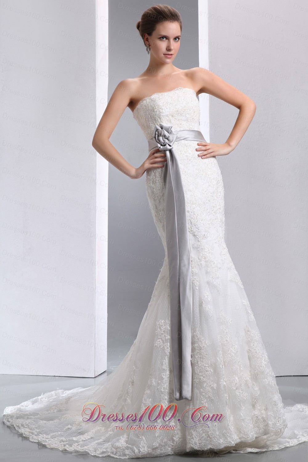 Sash Mermaid Court Lace Wedidng Dress Colored