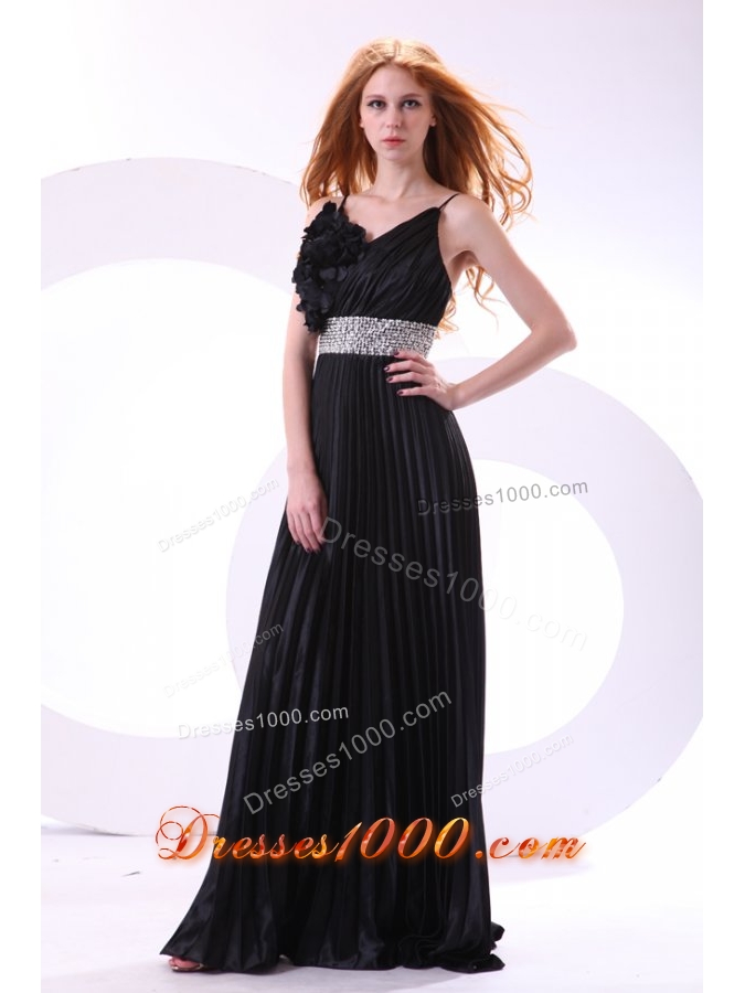 Wonderful Black Long Pleats Prom Dress with Spaghetti Straps