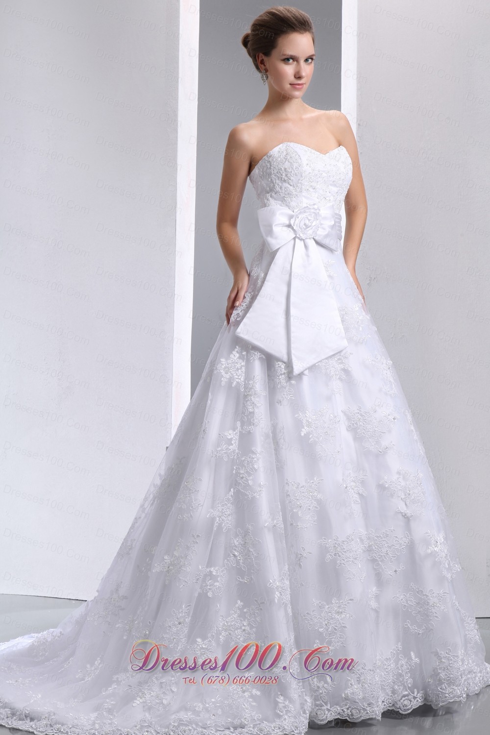 Go for full out luxury in this Bridal wedding dress. This strapless gown features a sweetheart neckline and beaded floral designs accent all over the wedding dress. Pleated waitband adds texture to the waist thus a big ruched bowknot matches the waist line very well. The nature trailing gives the gown a beautiful look. A hidden zipper under the botton completes the dressback make this gown has a so nice shape, it will bring you more surprise beyond thought.