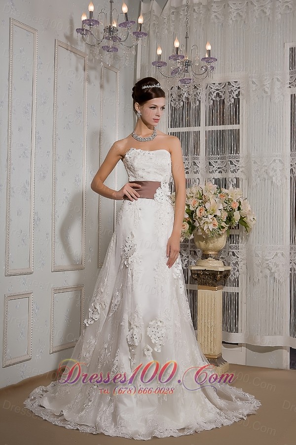Appliques Lace Court Train Wedding Dress Colored