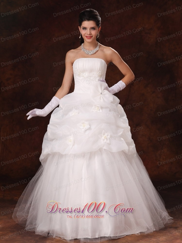 Strapless Hand Made Flowers Tulle Wedding Gown Floor-length
