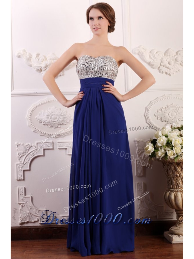 Chic Sweetheart Empire Chiffon Beaded Brust Prom Gown Dress in Blue
