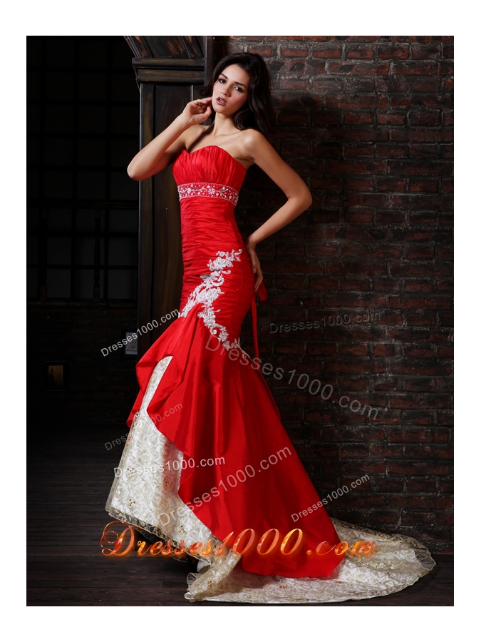 Hot Red Sweetheart Mermaid Prom Dress with Lace Decorate